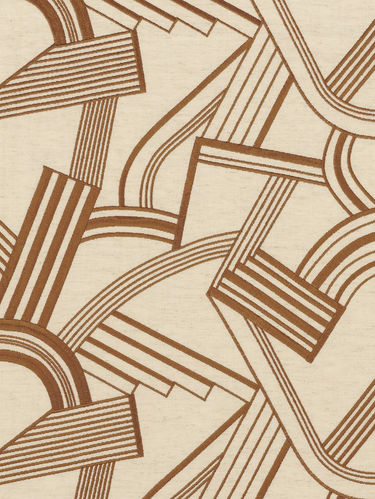 GRAND REX 優雅演繹裝飾藝術風格,經典幾何圖案配以對比色刺繡,呈現立體與深度。絲光嫘縈線帶來珍珠般光澤,與亞麻底布形成對比,突顯設計的高級質感與奢華魅力。垂墜自然、觸感細緻,是兼具視覺與觸覺享受的上乘之作。
